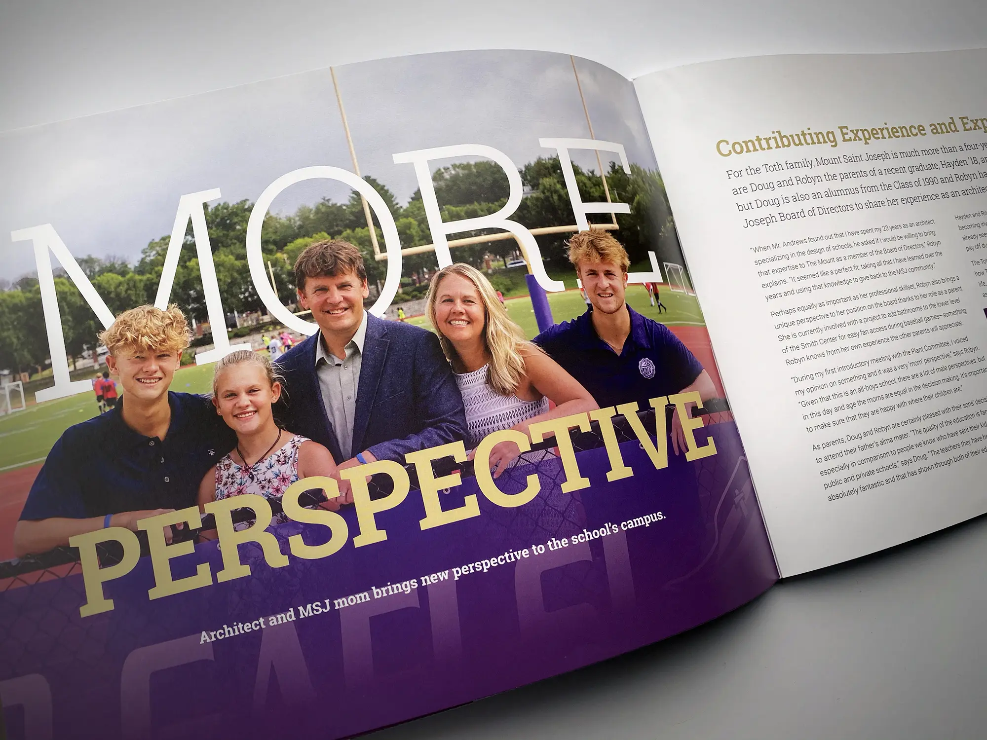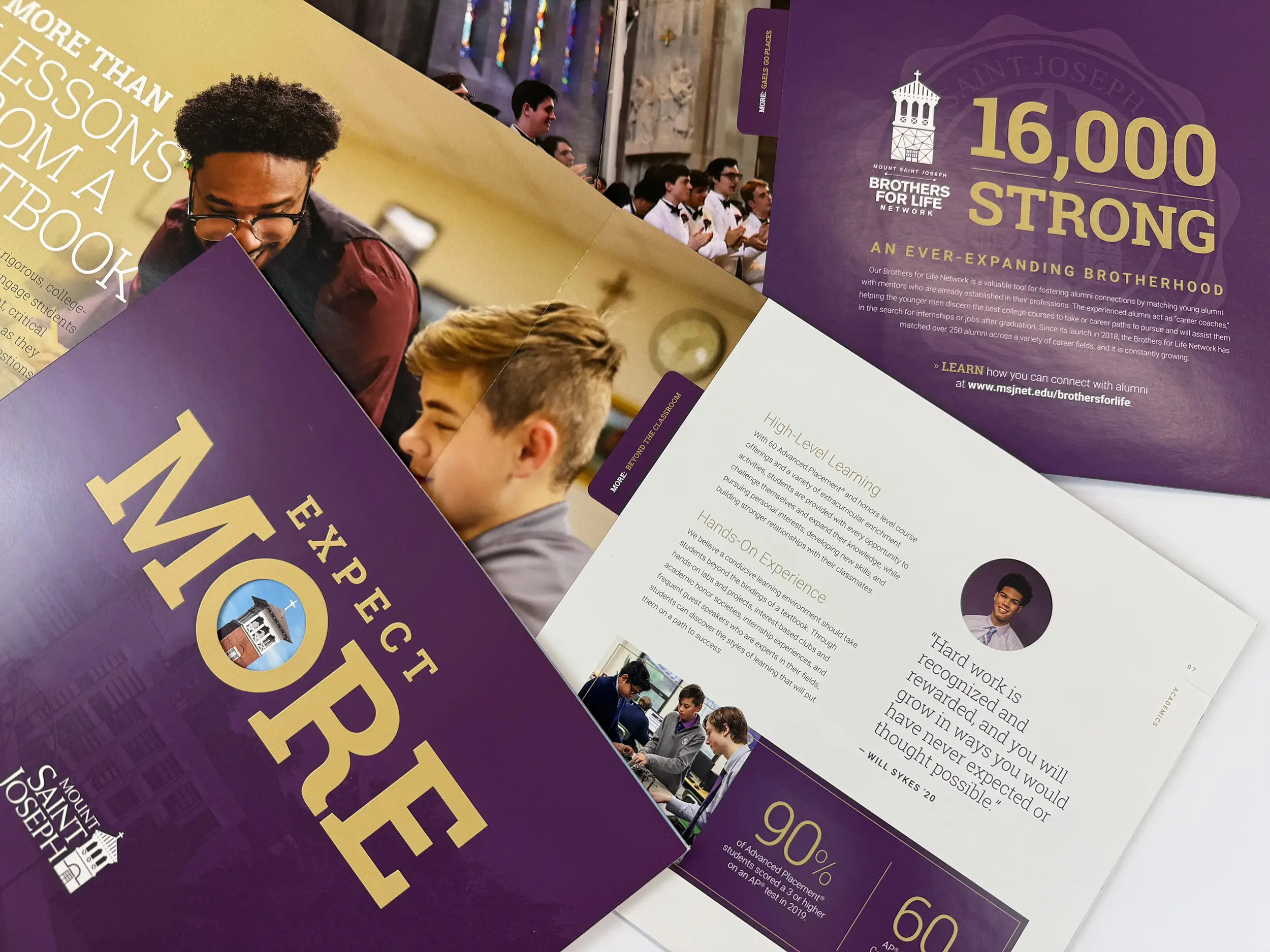 Mount St. Joseph School prides itself on creating opportunities for young men of all backgrounds and abilities. Committed to providing financial assistance to over 70% of its student body, the school needed a fresh approach for its annual fundraising campaigns. Beyond applying a bold new look to their materials, 2fold challenged the school to rethink how they speak to prospective donors.