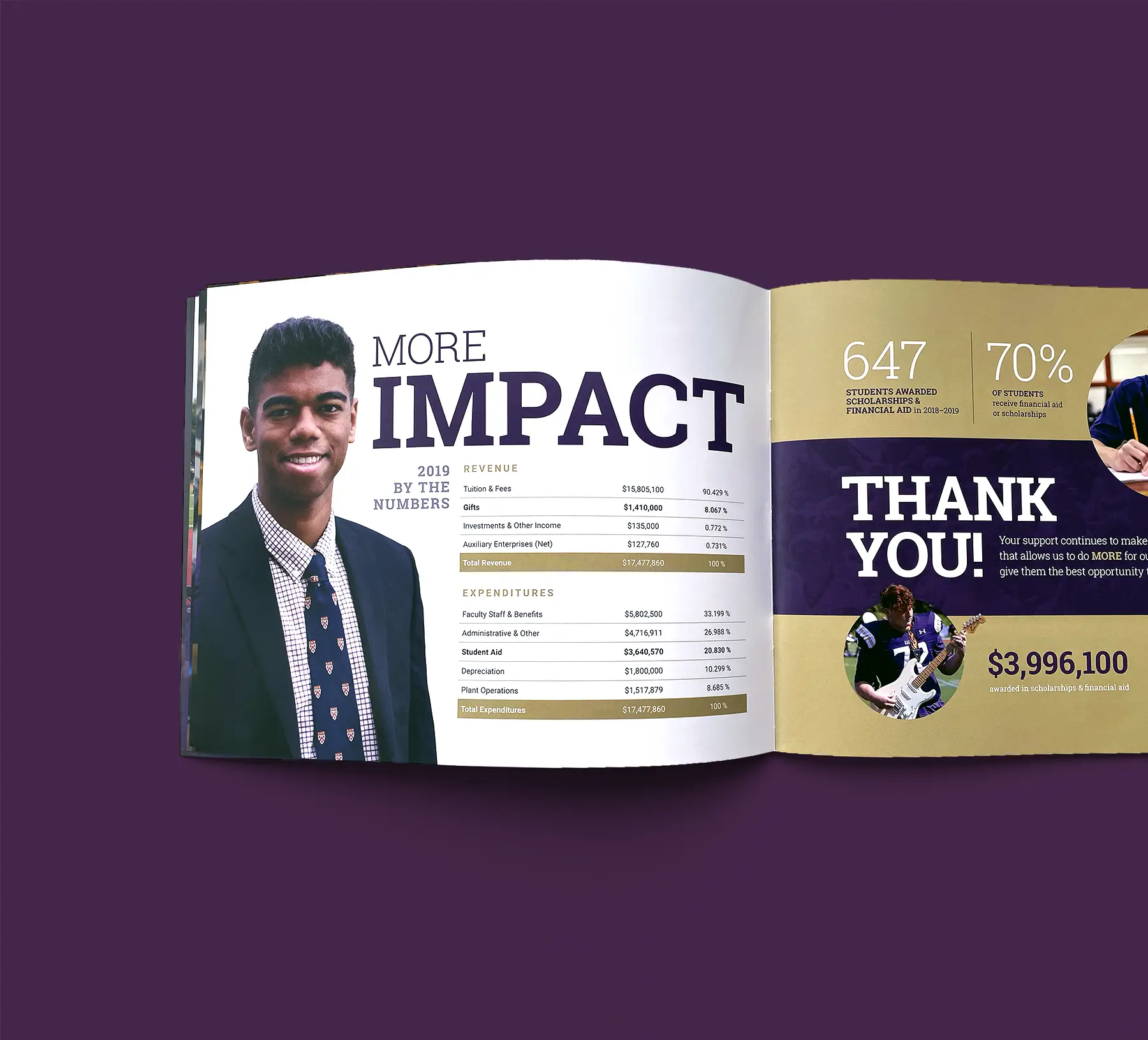 In addition to working with their Development Office, we've also partnered with their Admissions team to create viewbooks and a unique Shadow Day book for prospective students.